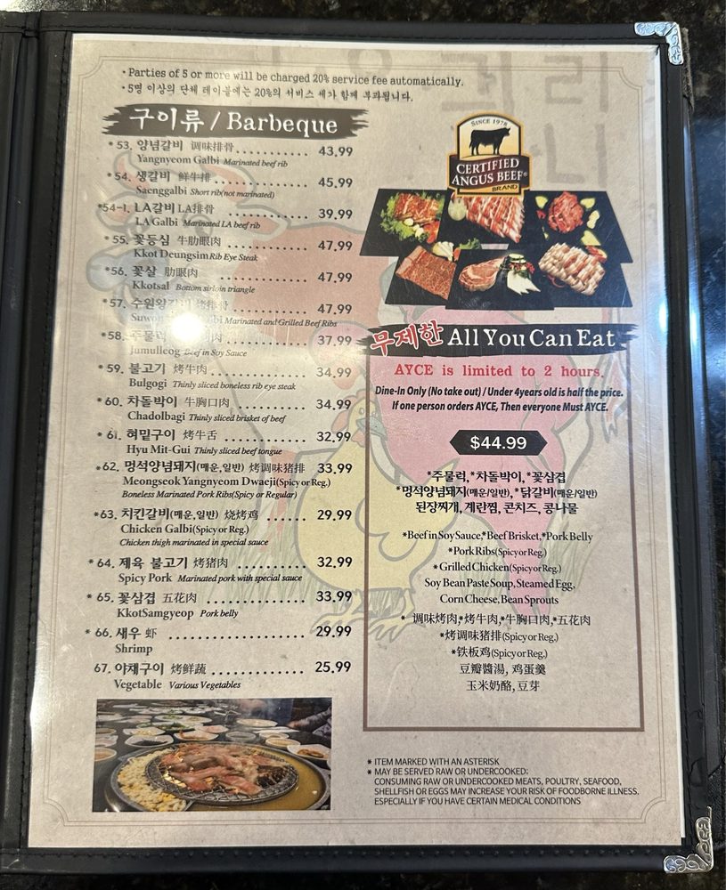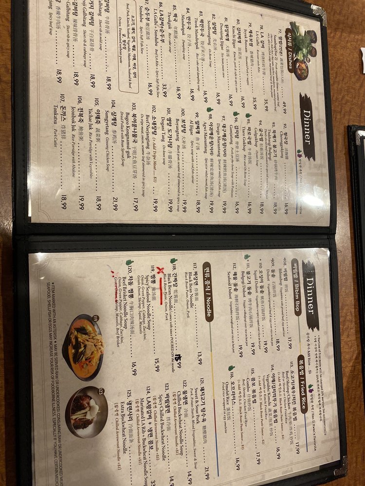 Han Il Kwan Menu